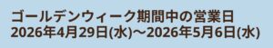 ゴールデンウィーク期間中の営業日について下記のとおりご案内いたします。